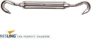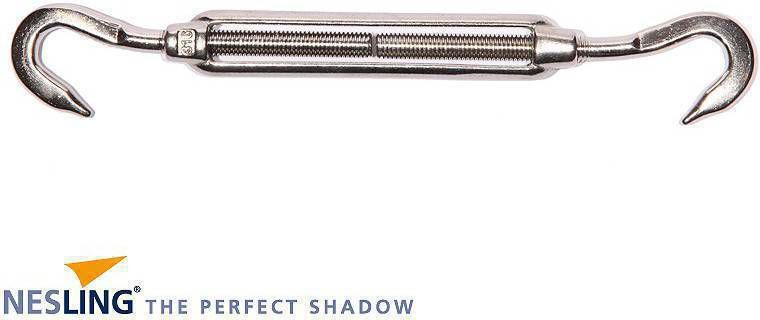 Nesling M10 spanmoer voor schaduwdoek vierkant Spanmoer met 2 haken. Ideaal om het Nesling schaduwdoek vierkant strak te houden. Gemaakt van hoogwaardig roestvrijstaal. Deze spanmoer is 10 mm dik en speciaal aanbevolen voor de vierkante schaduwdoeken.