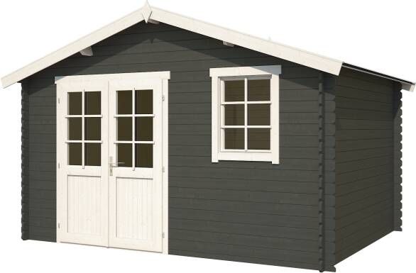 Geniet van uw tuin met deze klassieke blokhut met dubbele deur en prachtige ramen! Outdoor Life | Blokhut Arvid 300 | Carbon Grey | 380 x 300 cmDe Blokhut Arvid 380x300 Gespoten Carbon Grey-Wit van Outdoor Life Products is een prachtige blokhut met een traditionele look. Achter de afsluitbare dubbele deur met lage dorpel is bergruimte voor waardevolle spullen en/of tuingereedschap.De hoge deuren met lage dorpel maken het gemakkelijk om spullen, zoals bijvoorbeeld een fiets, in het tuinhuis te plaatsen. Dit tuinhuis heeft een draai-kiep raam en opent naar binnen toe kantelend of draaiend.De traditionele stapelbouwwijze met de massieve 28mm dikke wandbalken maakt de montage van dit tuinhuis relatief gemakkelijk en prima te doen voor de gemiddelde klusser. Deze blokhut wordt geleverd inclusief een basis bitumen dakbedekking. Het meegeleverde asfaltpapier is meer geschikt voor tijdelijk gebruik. Voor jarenlang plezier en een duurzame en kwalitatief hoogwaardige afwerking is het advies het dak af te werken met dakshingles.Alle aangegeven maatvoeringen zijn circa maten.